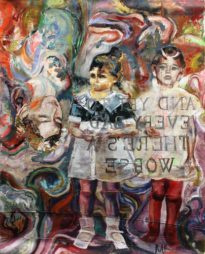 Bundled is a collection of paintings that were based on photos from my childhood. I was inspired by the ridiculous outfits that my parents bundled me in and just how much of my early life I have forgotten. I believe it is important sometimes to appreciate the moment rather than trying to photograph it to appreciate it later, but in the same breath I can say that having photographs for your memory to fall back on makes the inevitable forgetting a little bit easier to swallow. When I was only a couple years old, my parents would occasionally take me and my older brother to Prospect Park to feed the ducks. I have combined the feelings memories give with the motifs of the ducks, the bulky outfits I was forced to wear, and imagery from old photographs to create each painting.