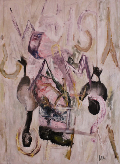 The clear media was intended to parallel the openness, and vulnerability one often feels whilst wearing lingerie. The thick paint and texture was intended to juxtapose those elements.